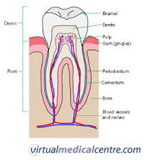 - Physiology of the Teeth - four parts: enamel, dentine, cementum and pulp